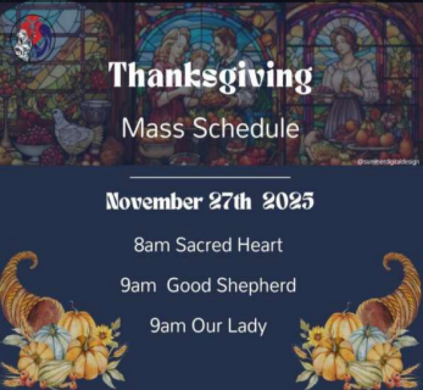 - All Fridays at Good Shepherd, and Sacred Heart on the First Friday of the month