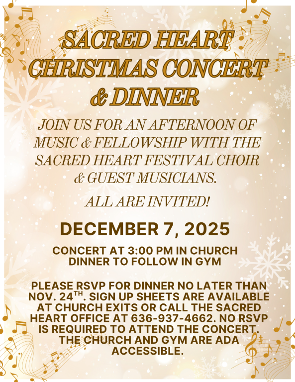 Welcome to Sacred Heart Parish. We hope you learn more about our church and our faith as you explore this website. If you have questions, please reach out to us. Thank you, and may God bless you in all your daily activities.